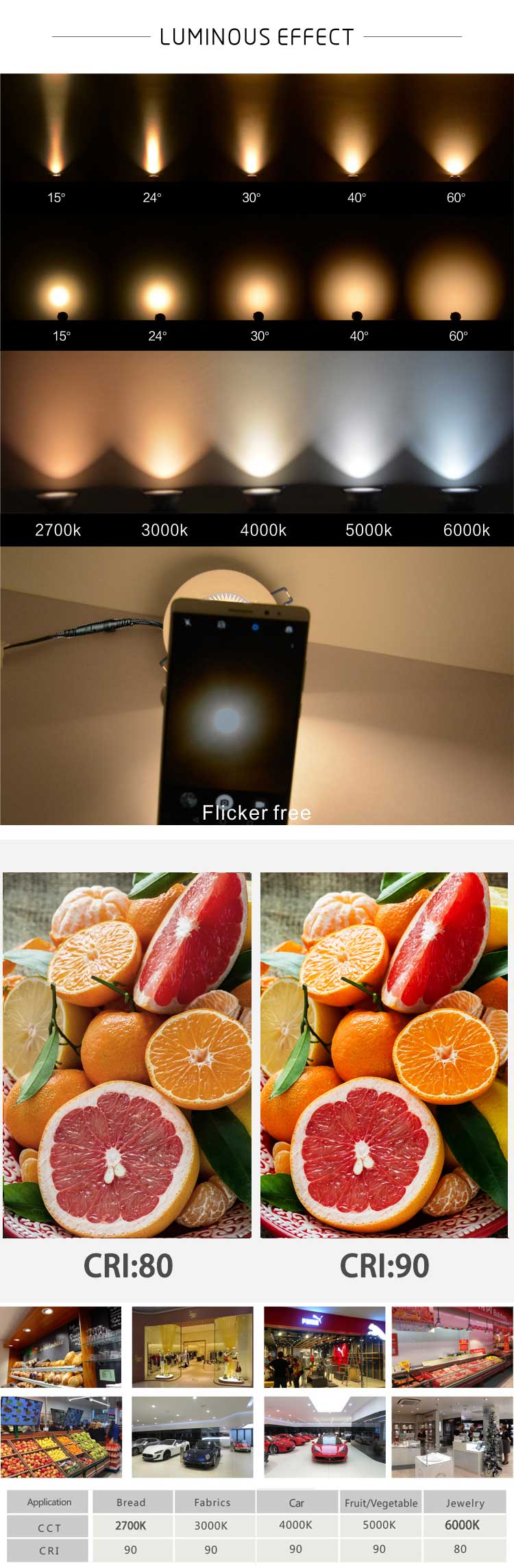 5 Watt, luminous flux: 400 lumen each, 3000 Kelvin, 25,000 hours lifetime, 100,000x switching cycles, CRI ≥ 80