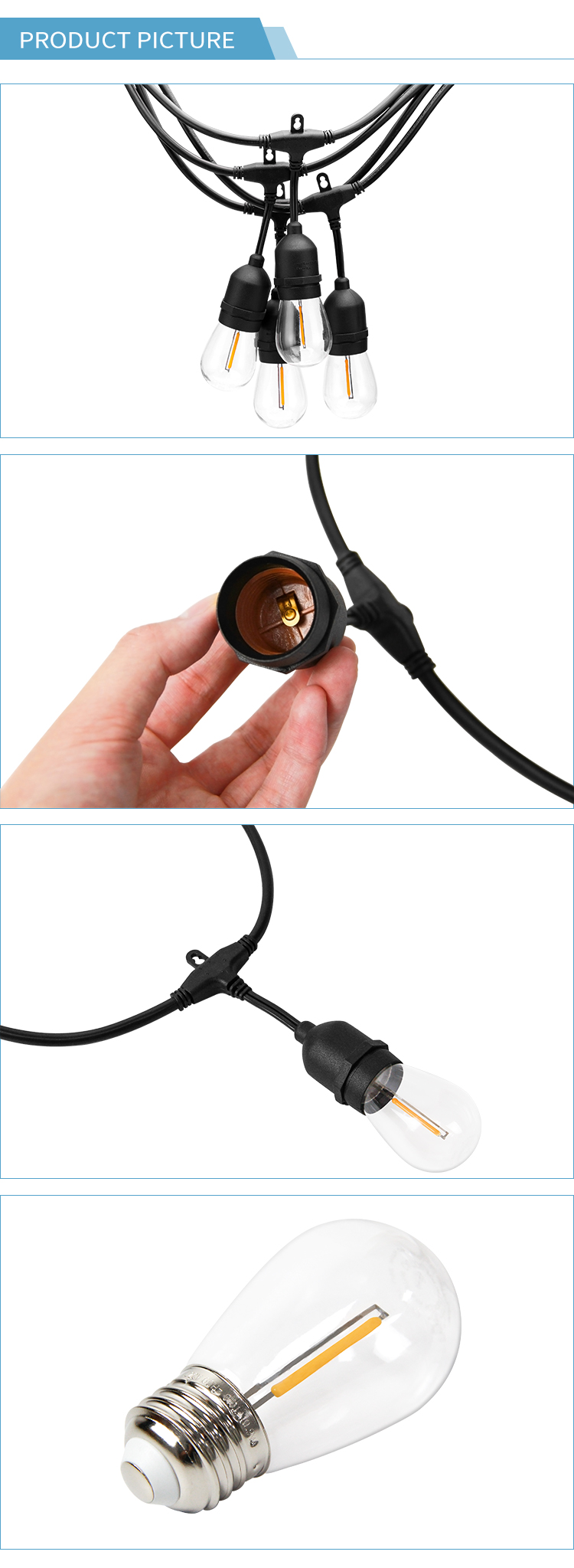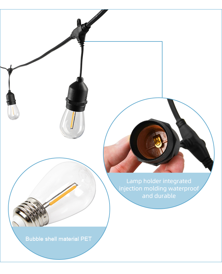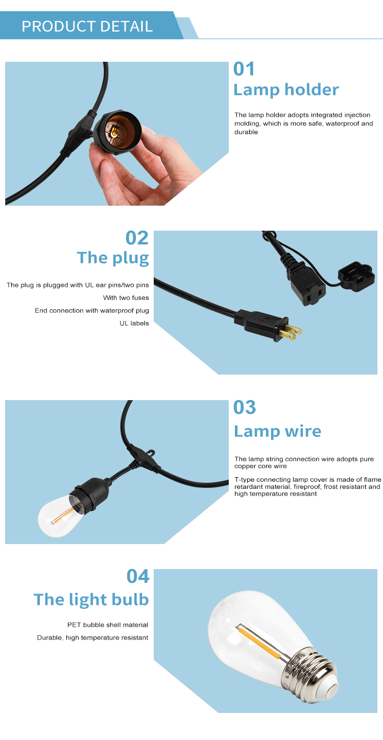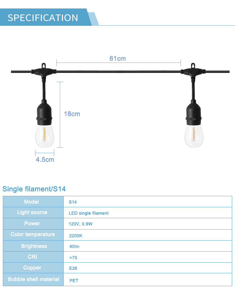 5) Single lamp parameters: LED single filament, 2200K, 40LM, 0.9W, adjustable light