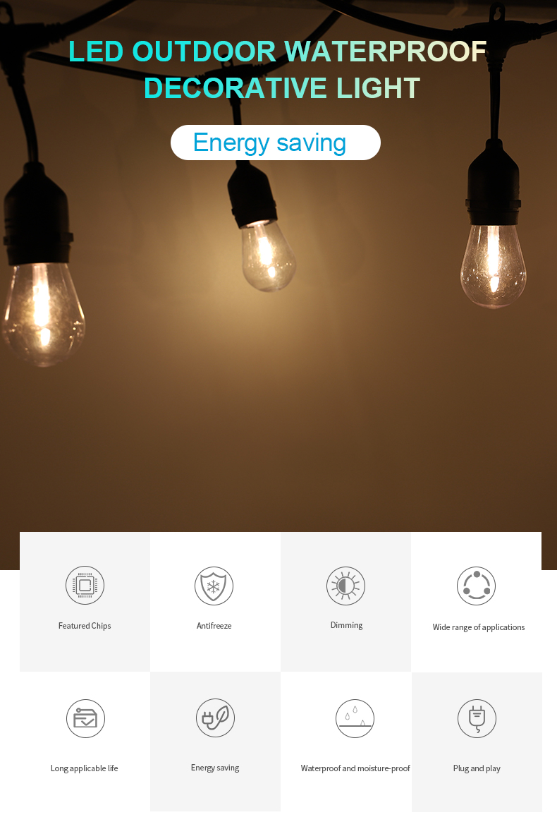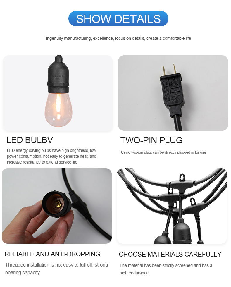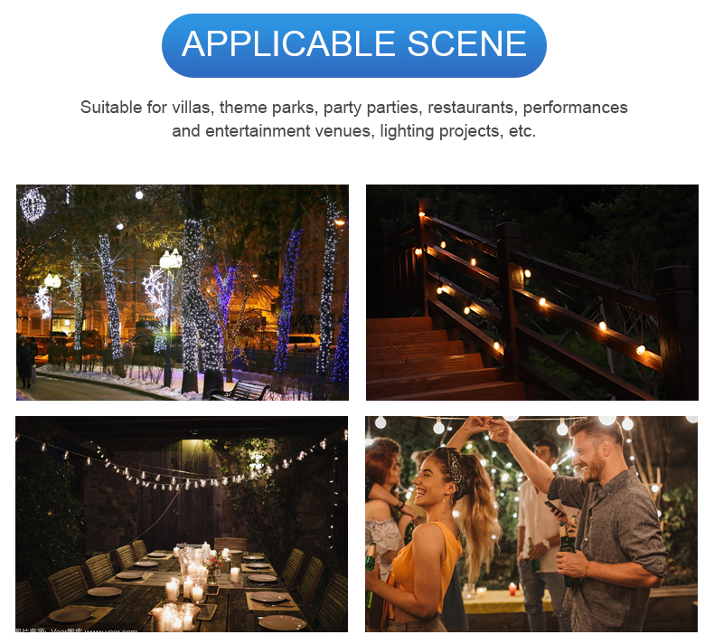 Introduction: ntroduction: 1) Line: 7.3m (24FT) 2) Adapter: AC120V 3) Number of lights: 12 lights 4) Distance of lamp: 60cm 5) Light bulb material: PET 6) Series: Max is connected with 40 sets 7) Both indoor and outdoor waterproof