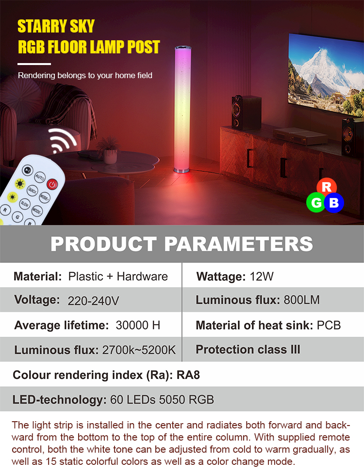 New Arrival 1.54m 220V RGB Colorful LED Floor Light(APP) Decorative Lamps for House Decoration