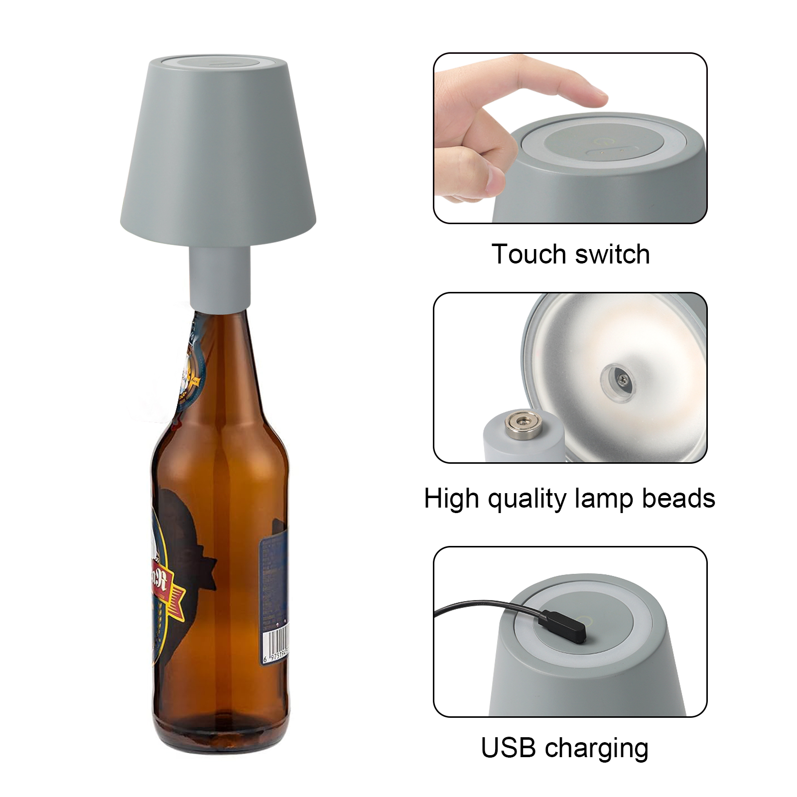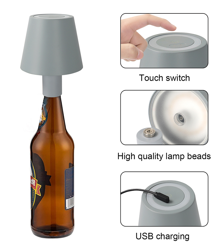 Led Table Creative Lamp Restaurant bar Dimmable Ambient Night Light Portable Rechargeable Conical Grey Bottle Lamp