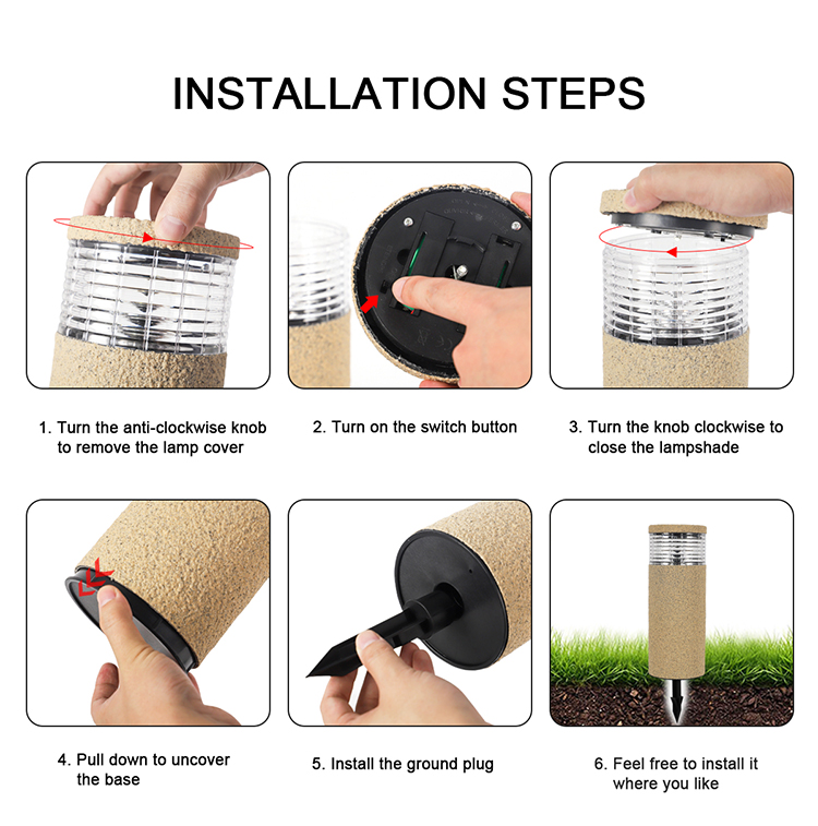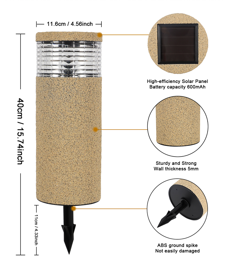 Outdoor Solar Lawn Light Garden Pathway Lighting Solar Courtyard Waterproof IP44 Stainless Steel for Decor