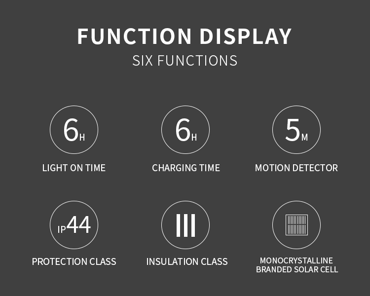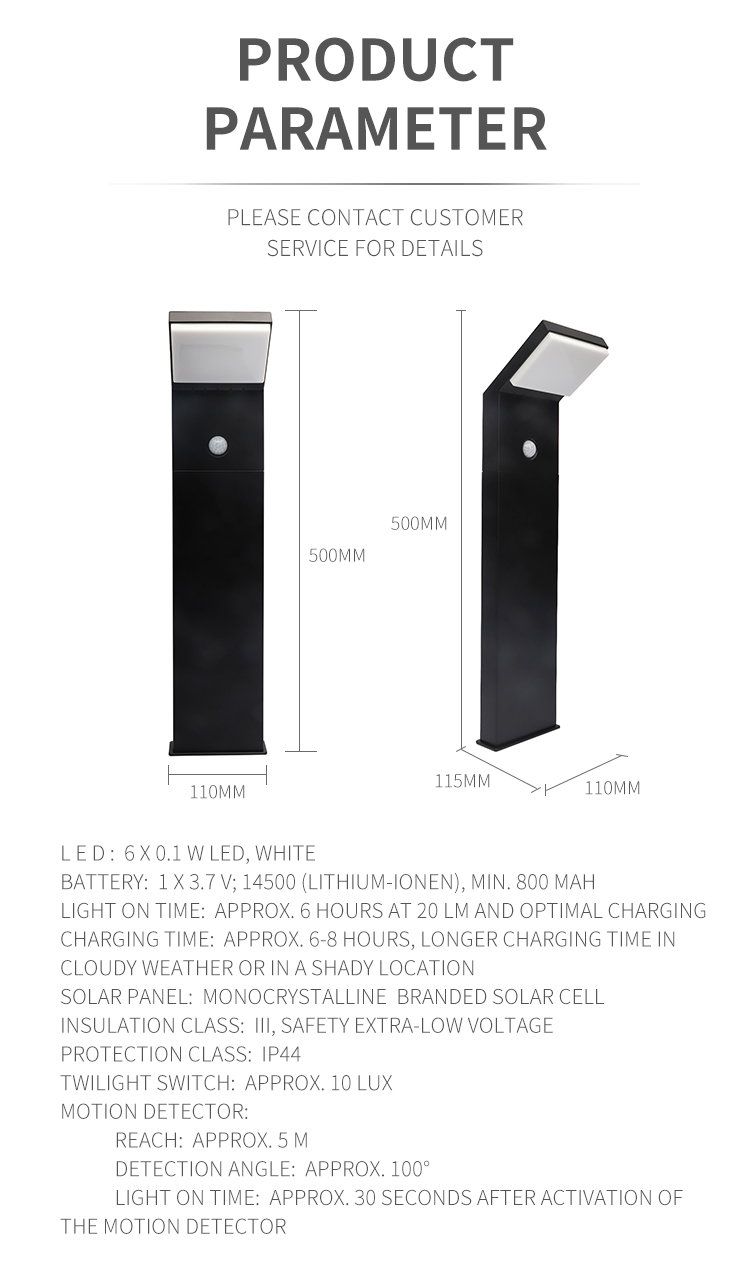 Charging time: approx. 6-8 hours, longer charging time in cloudy weather or in a shady location