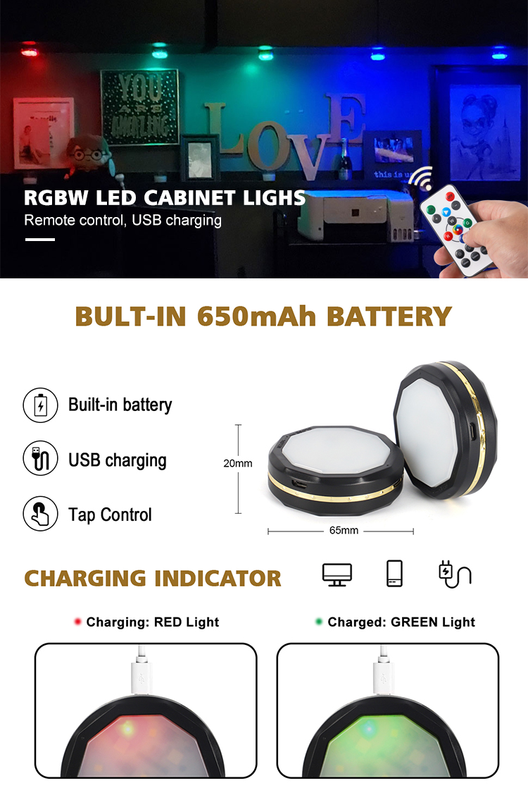 11: Package: color box + outer box 3pcs Lamp + 1pcs remote control + 1pcs manual + 4pcs double-sided tape + 1pcs charging cable