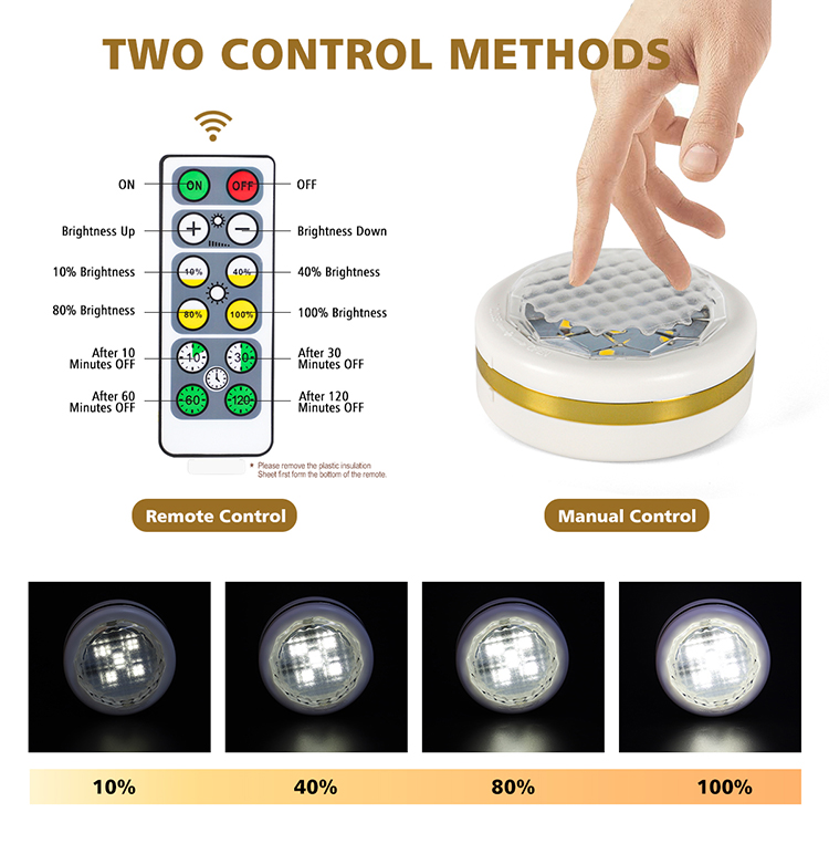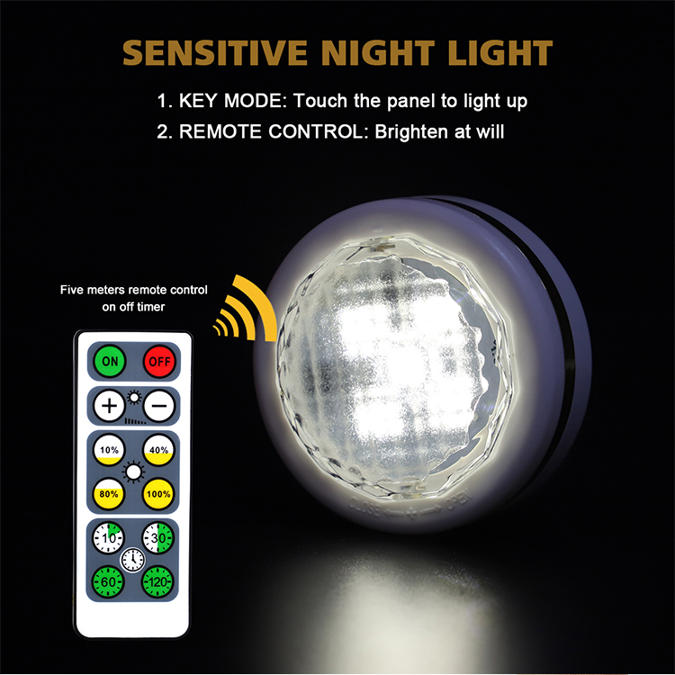 11: Package: color box + 6pcs lamp in outer box + 2pcs remote controller + 1pcs manual + 8pcs double-sided adhesive tape