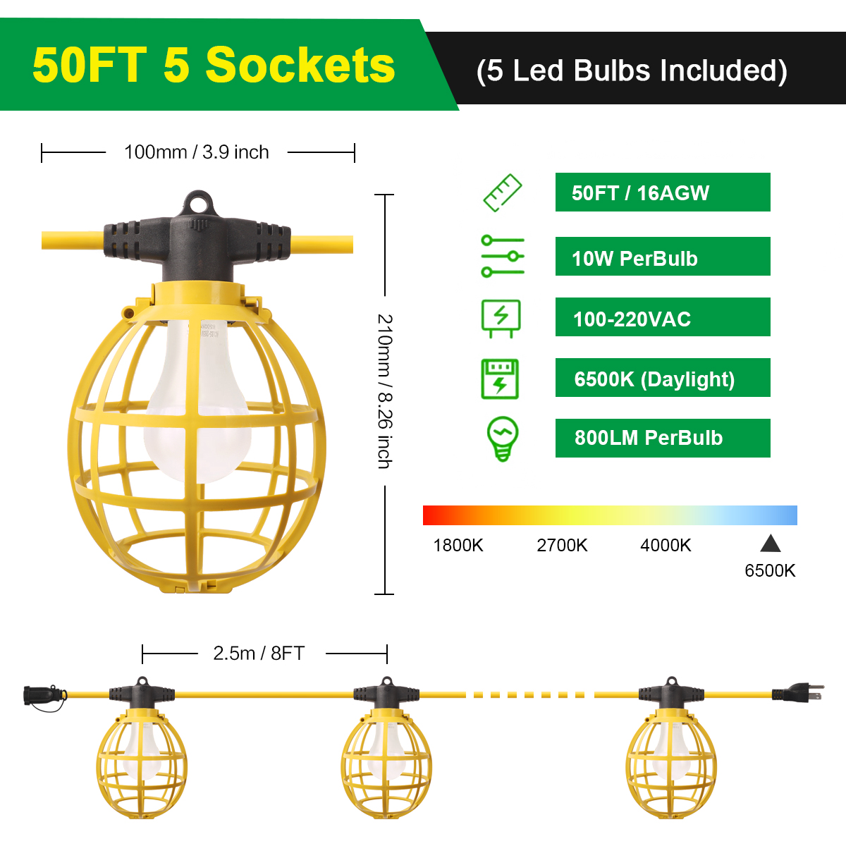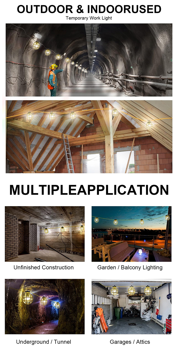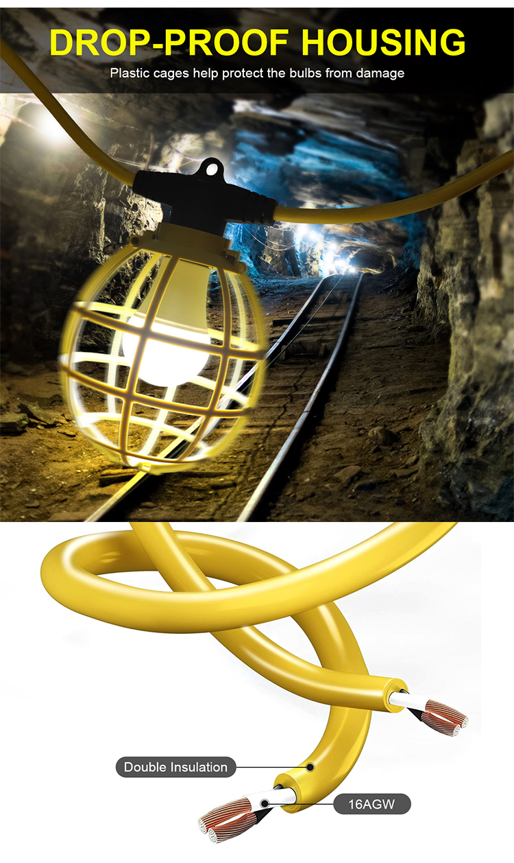 Industrial Tunnel Lighting String Outdoor Waterproof IP67 LED String Lights With Cage for Temporary Work
