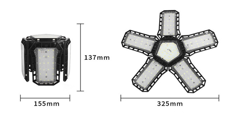 Up to 90°Adjustable Design: Five LED panels of garage light are adjustable to be folded up to 90° for covering a wide area. You can adjust the positions of panels according to your need so as to achieve a perfect garage lighting distribution curve.