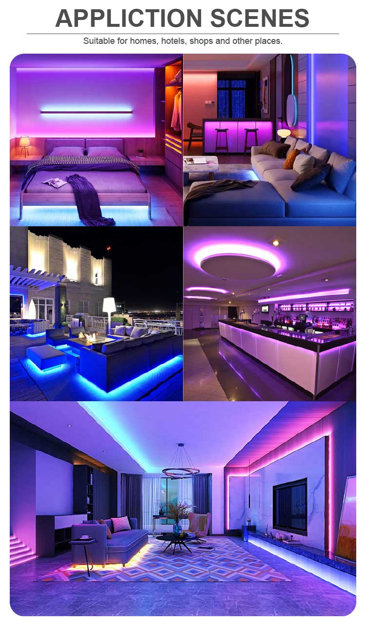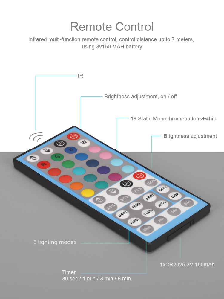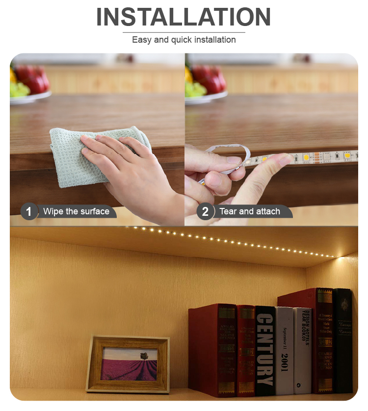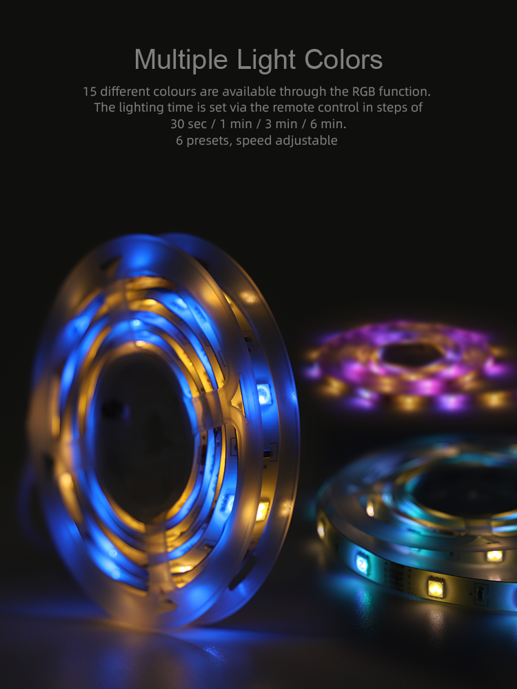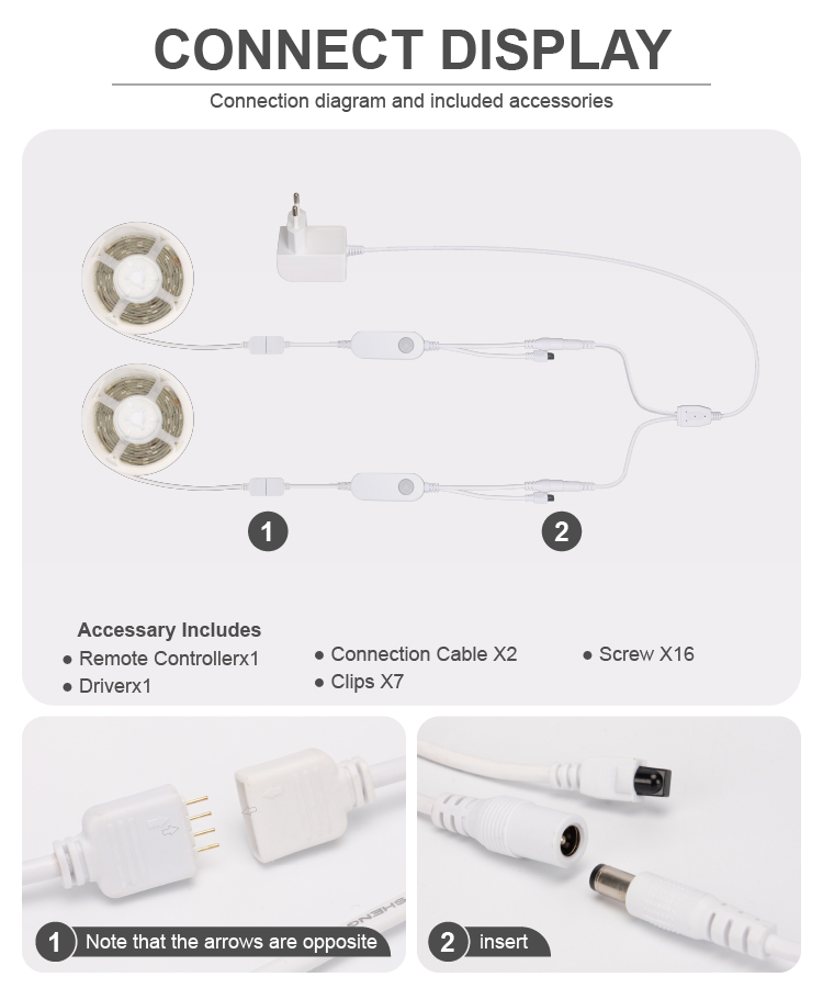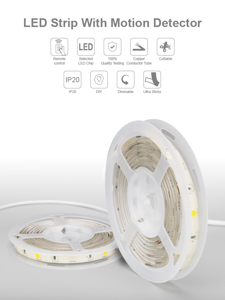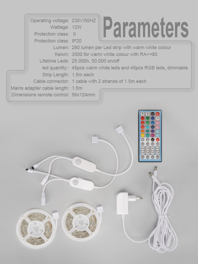 including: 2 strips with 2motion detector, adaptor with 1.5m cable, remote controller