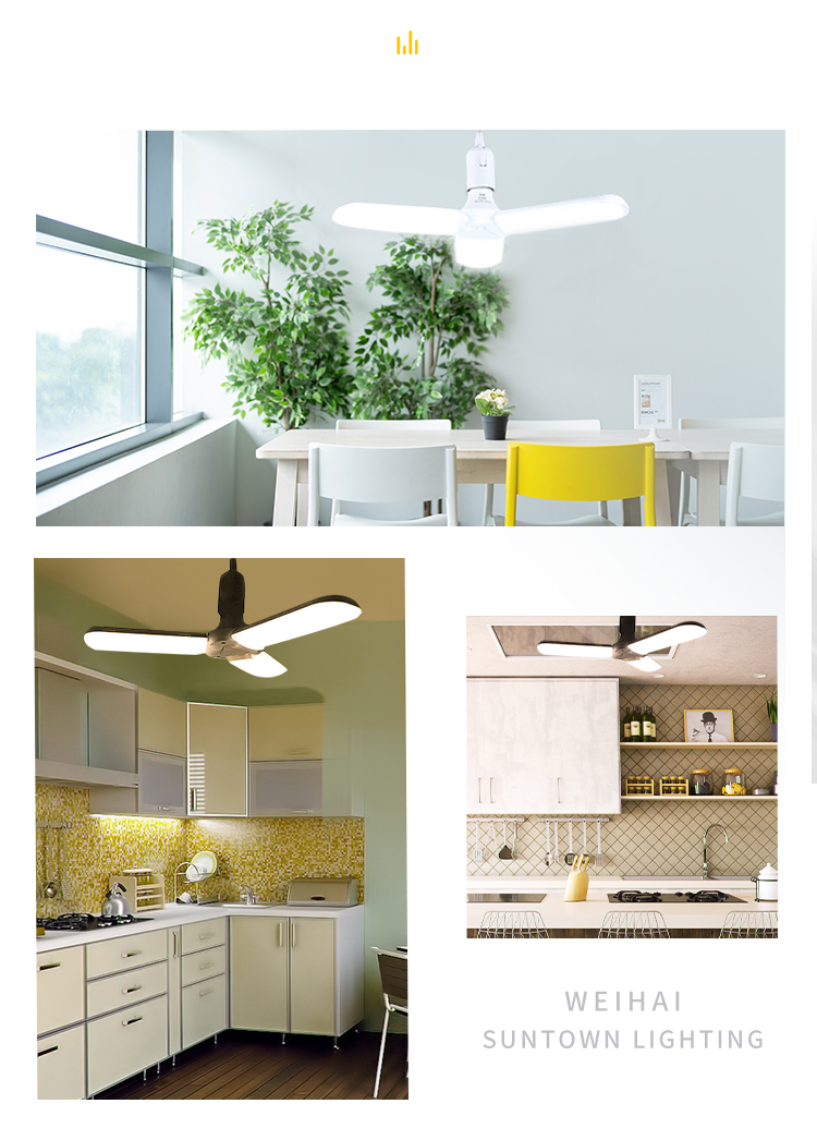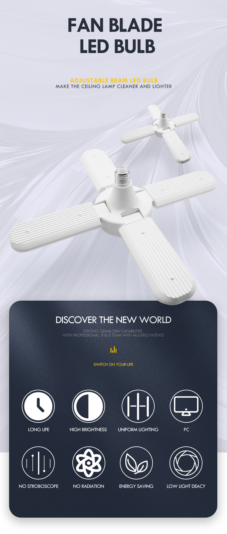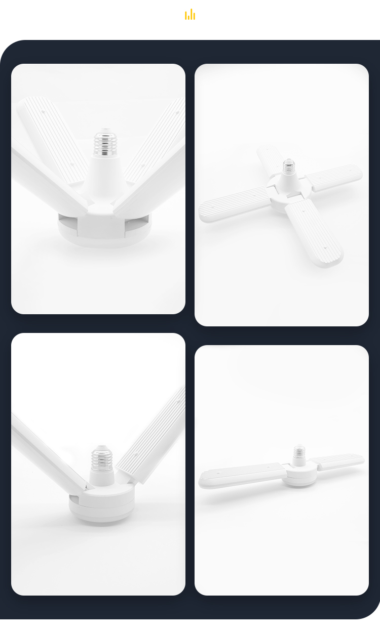 2.Adjustable Panels : The LED garage light is designed with four adjustable LED , which can be folded up to 90 degrees, and there is a circular downward-facing light just as you like. Being able to bend the arms of the bulb to flood darker areas of the room with light is very useful, bring huge amount of light.